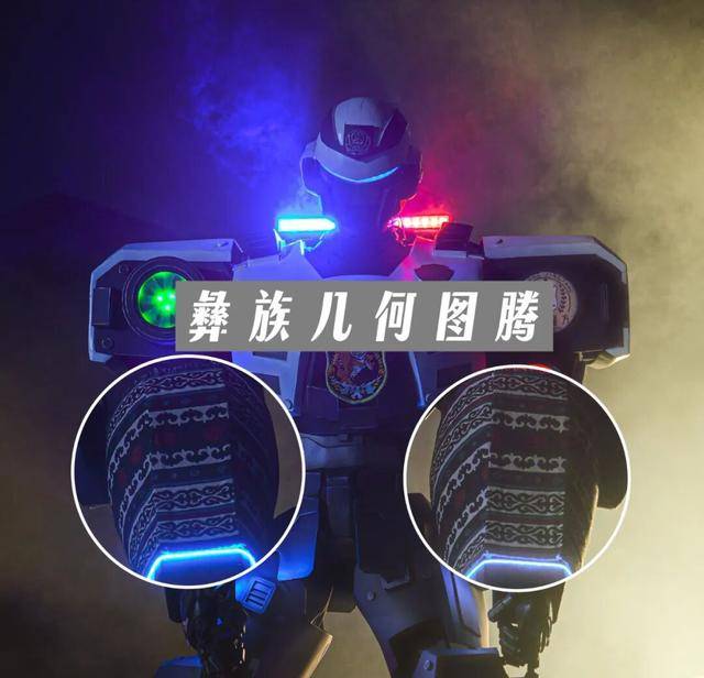 寄意“高原的孤怯者,彝族等少数平易近族文化取云南地区特色。“青”取自云南的青山绿水取芳华守护的。城市的守城人”,强化警务辨识度。和甲融入彝族保守纹样(如臂甲处的彝族几何图腾、领口的火焰纹变体),以机甲人偶形式现身各类宣传勾当、节庆市集,同时,肩部搭载模仿警灯的红蓝爆闪光源,头部配备警用法律记实仪制型的光学镜头,